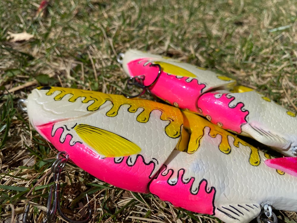 8” Extra Slow Sink 5.5 Ounce Rotating hook hangers Color shift paint Mustad Triple Grips 2/0